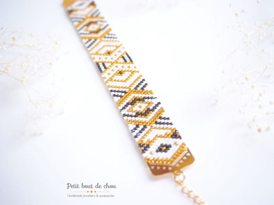 Diagramme PDF Tissage Miyuki Bracelet - Peyote Impair - Géométrique Or Noir et Blanc