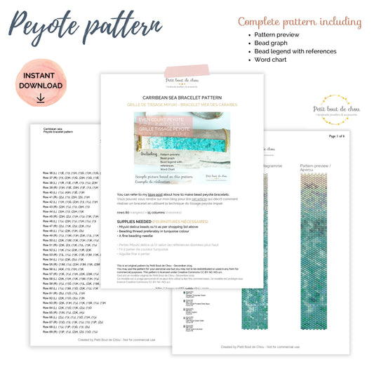 Diagramme PDF Tissage Miyuki Bracelet - Peyote Impair - Mer des Caraibes