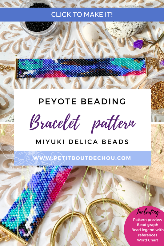Diagramme PDF Tissage Miyuki Bracelet - Peyote Impair - Purple Nympheas