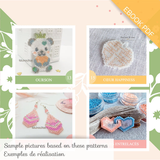 E-book - 8 Diagrammes Brick Stitch - PDF Miyuki delica beading patterns mini ebook/Beading grid/Miyuki delica beads/romantic love patterns